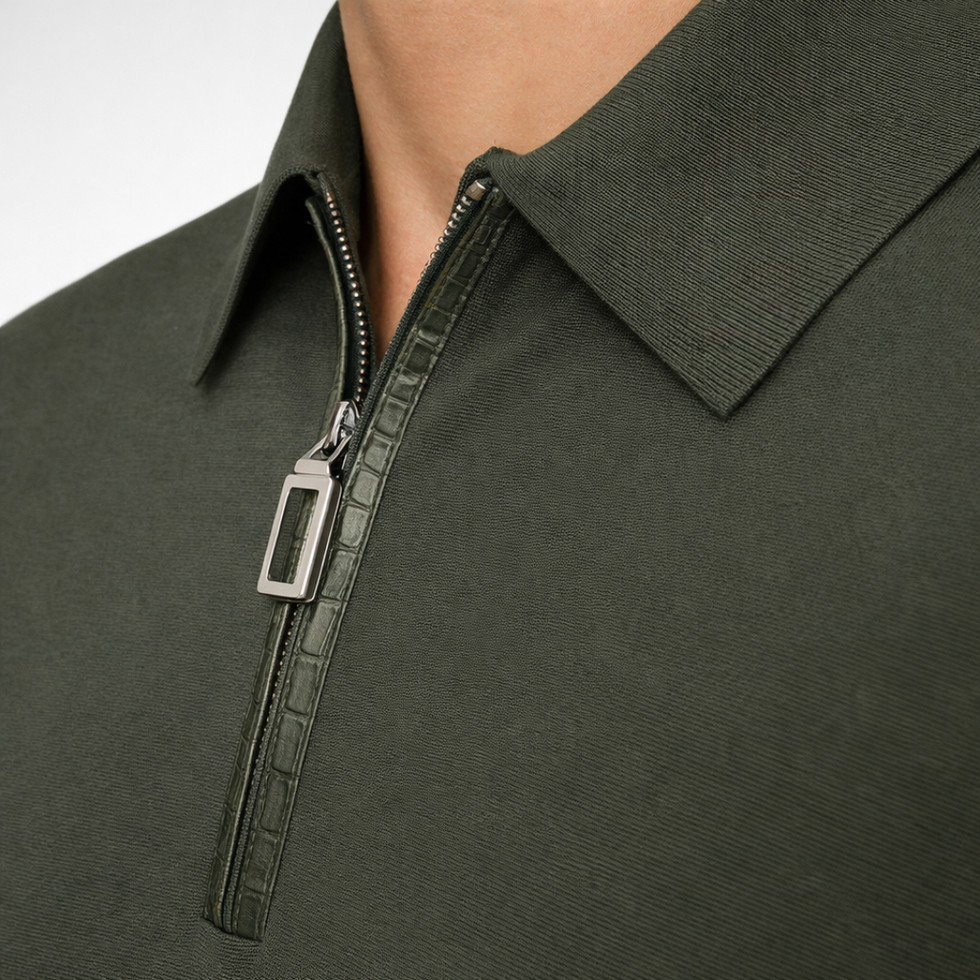 Konig Genève Silk Zip Polo Shirt for Men Green