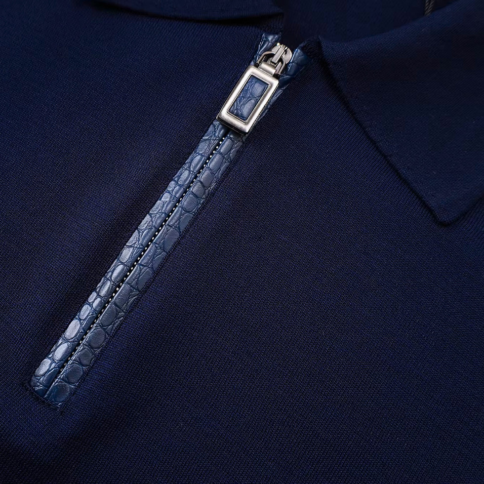 Elevating off-duty dressing with understated sophistication, Konig Genève presents this pure silk knit zip polo. Expertly crafted in Italy, it combines exceptional softness and a fluid, refined drape with distinctive leather inserts for a subtle statement of luxury. Finished with a signature logo tab and precious metal galvanised hardware, this piece brings modern elegance to the discerning casual wardrobe.